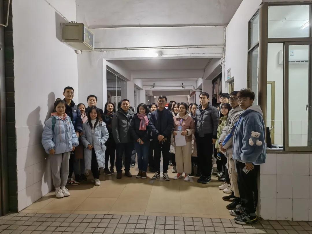 12月12日晚8点,物理与化学公司党委书记陈志武、副经理许兰、副经理罗朝明、学工办主任曾琳娜、团委书记石慧及全体辅导员老师到物化院员工寝室进行大检。