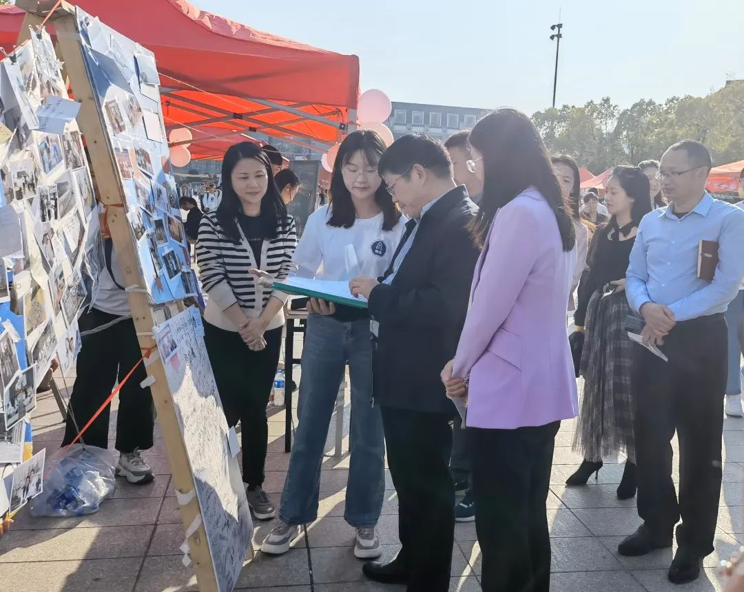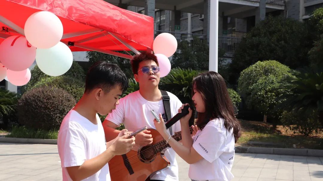 除此之外,现场还设置了“重走主席游学路”相关问题问答区,参与本次成果展的学子正确回答问题即可集章。“三下乡”队员们向物化学子分享实践收获与心得,还带来了精彩的才艺表演,现场气氛火热,赢得众多学子们的点赞。