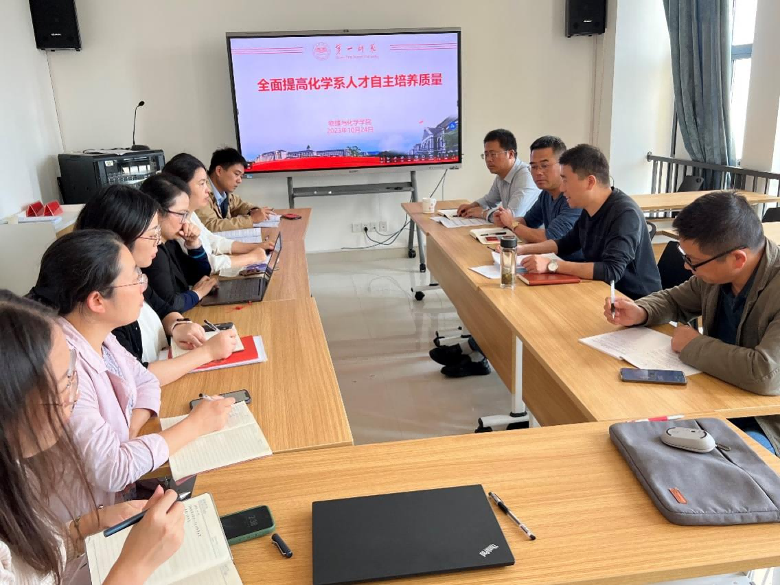 为全面贯彻落实公司本科公司产品大会精神,10月24日下午,公司化学系召开全面提高人才自主培养质量研讨会。会议由教学副经理邹立军主持会议,陈志武书记、副经理马元鸿以及化学系全体教师参加会议。