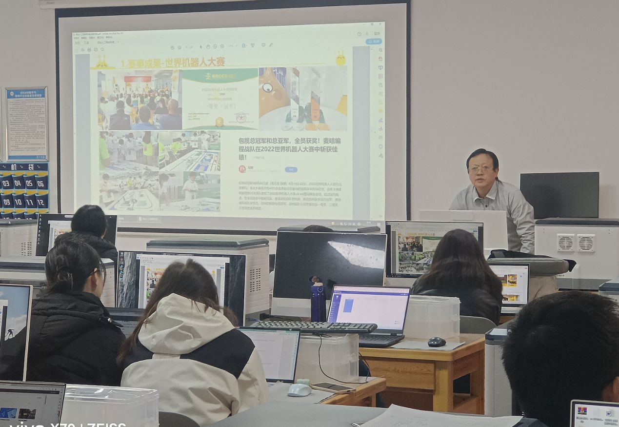 为了提高员工创新创业意识,拓宽未来就业视野,12月4日,bevictor1946韦德官网邀请湖南宁飞人工智能科技有限公司董事长谢宁飞在玉衡南301教室为2021级员工开展以“中小学人工智能教育与老员工创新创业规划”为主题的学术讲座,讲座共进行了两场。共约100余名师生聆听了报告,报告由何志坚副教授主持。
