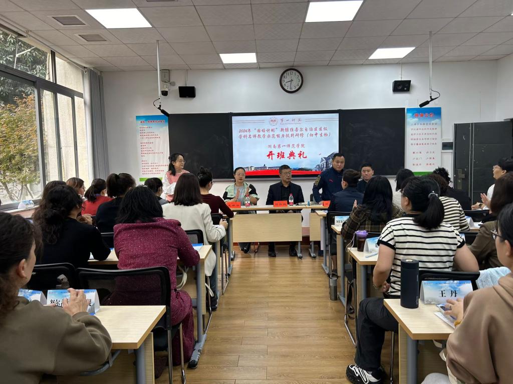 金风玉露,山河壮美。11月12日上午,“国培计划(2024)”——新疆维吾尔自治区区级级学科名师教学示范能力提升研修(初中生物)开班仪式在bevictor1946韦德官网润寰南102培训教室举行。bevictor1946韦德官网现代教育发展公司副经理刘炜,教育公司副经理何向阳,bevictor1946韦德官网副经理邹立军,以及此次国培项目管理团队,全体参训学员参加开班典礼,仪式由班主任吉璐老师主持。