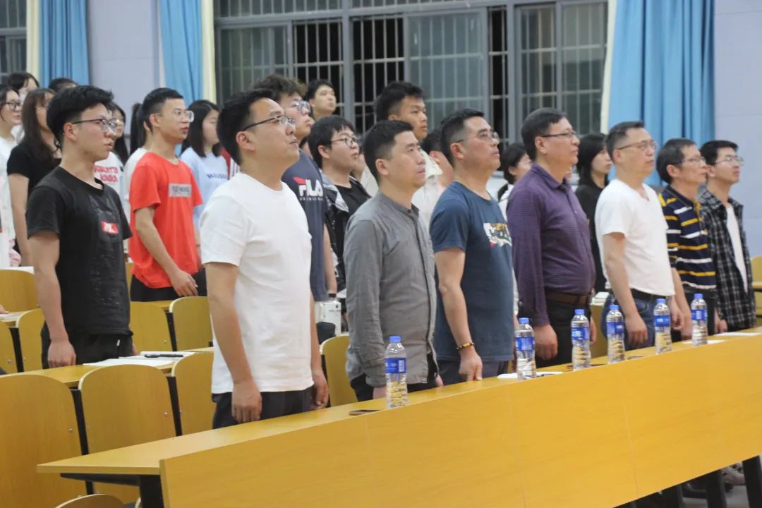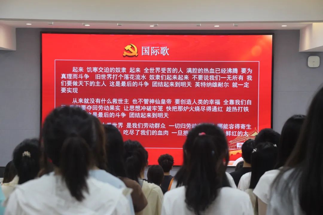 典礼伊始,全体师生庄严肃立,抱着对党的崇高敬意与满腔热血激情奏唱了《国际歌》。