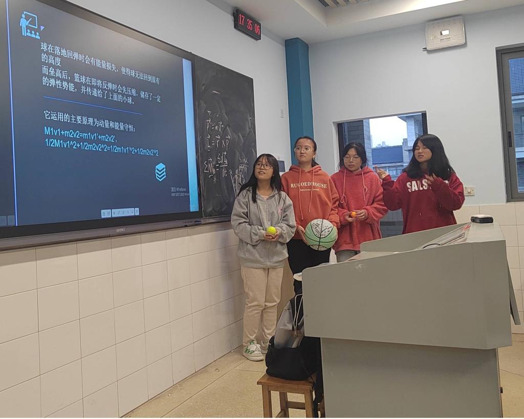 bevictor1946韦德官网实验室开放日活动持续开展中,2024年3月29日公司青年教师陈慧博士在怀中北502进行了本学期第一场实验室“开放日”活动,此次活动的主题是动量守恒实验。陈慧老师首先讲解了动量守恒定律的内容。随后提问请同学们回答以下三种情况的可能实验结果,将三个质量不同的篮球,网球,乒乓球,分别从同一个高度落下,记录反弹情况;将大球放到小球下方一起放下,查看落下后两个球反弹情况;将三个球分别叠加,放一起查看反弹情况。最后同学们利用这三种球进行现场的实验演示。同学们在此次开放日活动中能够勤于思考,利用学习到的知识解释实验现象,真正做到了学以致用。