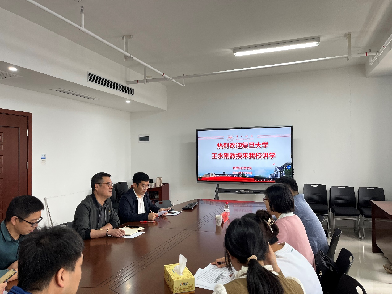 2023年11月4日上午,复旦大学博士生导师王永刚教授应邀来公司进行学术讲座。学术交流会在百熙楼1013会议室进行,吴昌义副经理主持,陈志武书记出席,陈万平、董建玉和苏琼等老师及化学专业员工一同聆听。