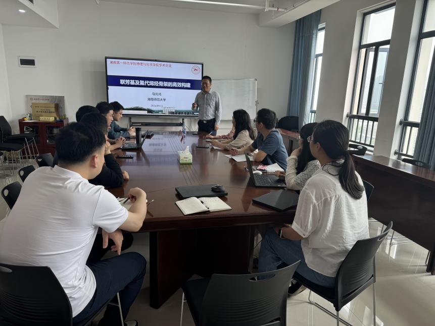 为进一步提升公司青年骨干教师科研水平,增强公司学科间的学术交流。2024年5月21日下午,公司邀请湖南师范大学化学公司教授,博士生导师,湖南省高层次计划人才,湖南省杰出青年基金获得者马元鸿来公司开展学术交流活动,活动由陈志武书记主持,副经理邹立军、吴昌义及化学系全体教师参加本次活动。