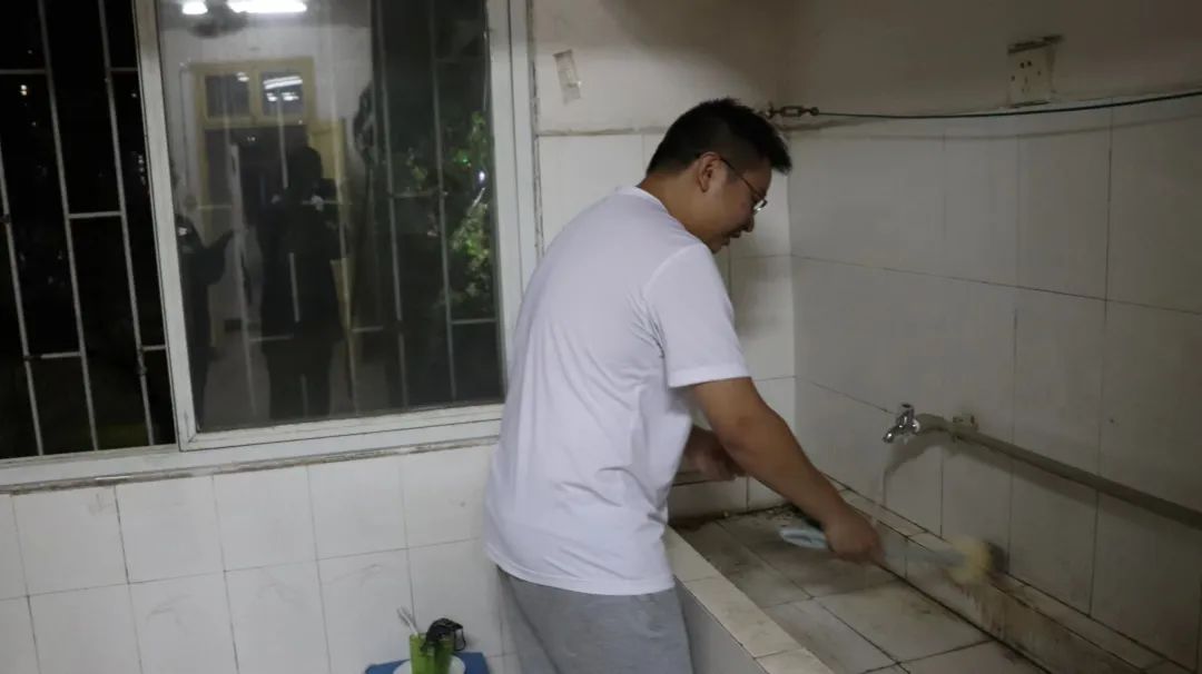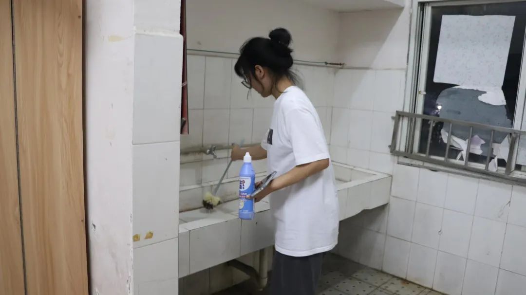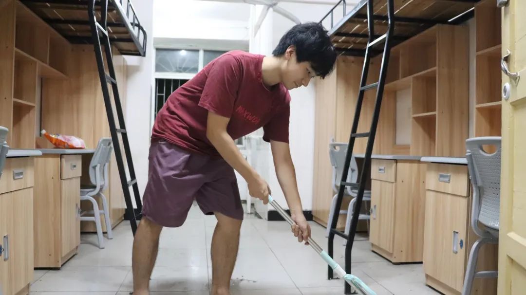 清扫过程中,志愿者们本着一丝不苟的严谨态度,明确分工、相互配合、井然有序,力求做好迎新工作第一步,不遗漏任何一间寝室,不放过任何一处死角。从检查宿舍门窗到擦拭衣柜爬梯;从清洗地板污垢到排查电器安全;从擦抹桌椅墙面到细致清洁床板床沿,同时还细心保证寝室内外通风,以便新生们最大程度上享受安全温馨的居住环境。最终在所有志愿者的共同努力下,新生宿舍焕然一新。